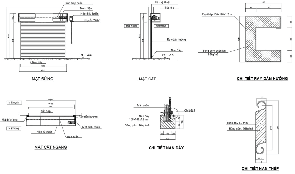 BẢN VẼ KĨ THUẬT CỬA CUỐN THÉP CHỐNG CHÁY EI