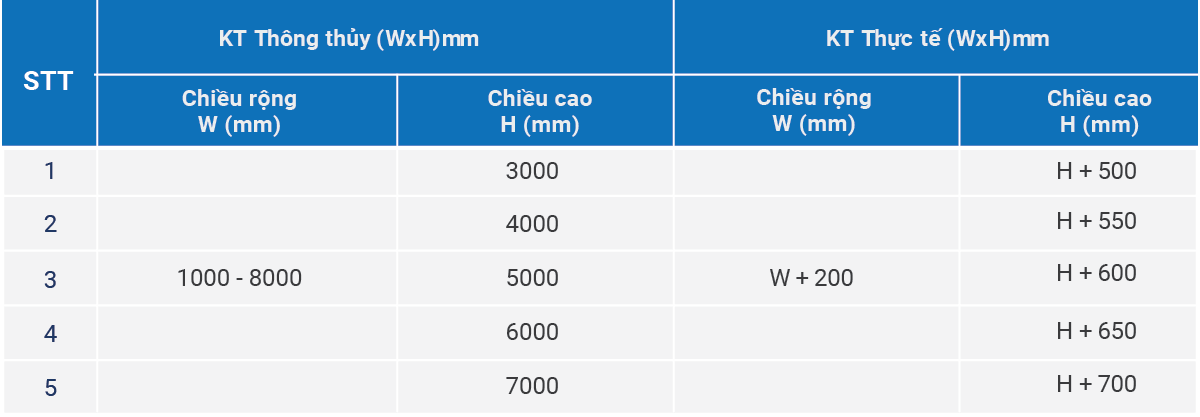 THÔNG SỐ KÍCH THƯỚC HỘP KỸ THUẬT BAO CHE CỬA CUỐN